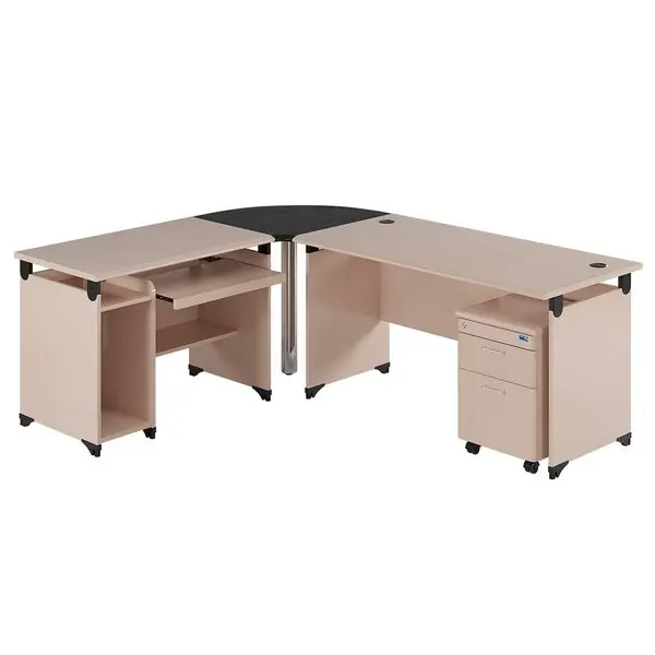 Bộ bàn lãnh đạo mặt gỗ Laminate bo cong gồm: Bàn làm việc, tủ phụ và hộc di động.