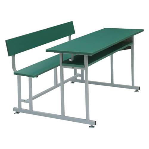 Quy cách: Bàn liền ghế, khung thép sơn tĩnh điện, gỗ melamine chống trầy chống ẩm.