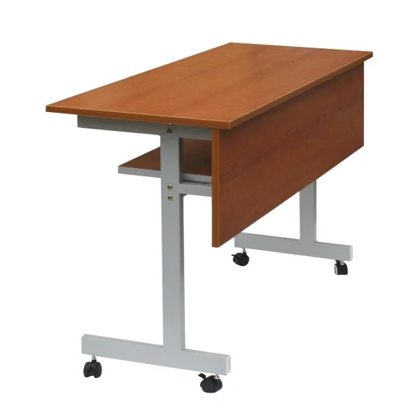 Bàn hội trường khung thép sơn tĩnh điện có bánh xe, mặt bằng gỗ Melamine màu vàng.