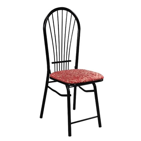 Ghế gấp gọn khung thép sơn tĩnh điện, đệm ngồi bằng vải hoặc PVC.