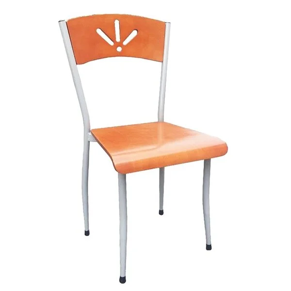 Ghế khung thép chân tĩnh, sơn tĩnh điện hoặc mạ kim loại, đệm tựa bằng gỗ.