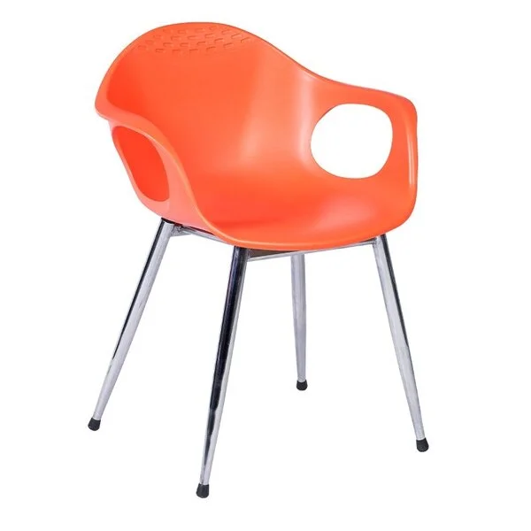 Ghế cafe khung thép mạ chân tĩnh, đệm ghế bằng nhựa màu.