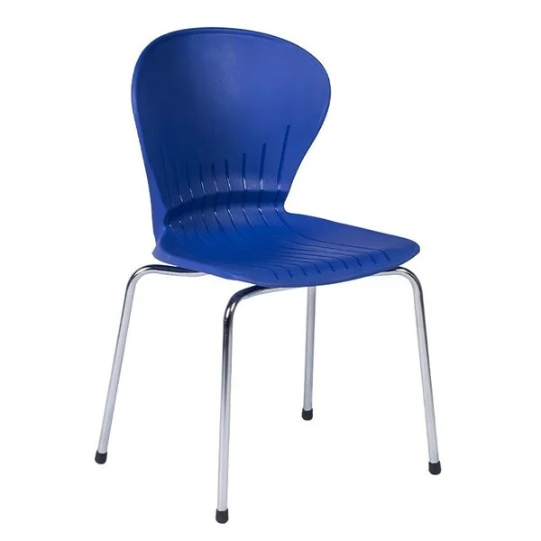 Ghế khung thép mạ chân tĩnh, đệm ghế bằng nhựa.