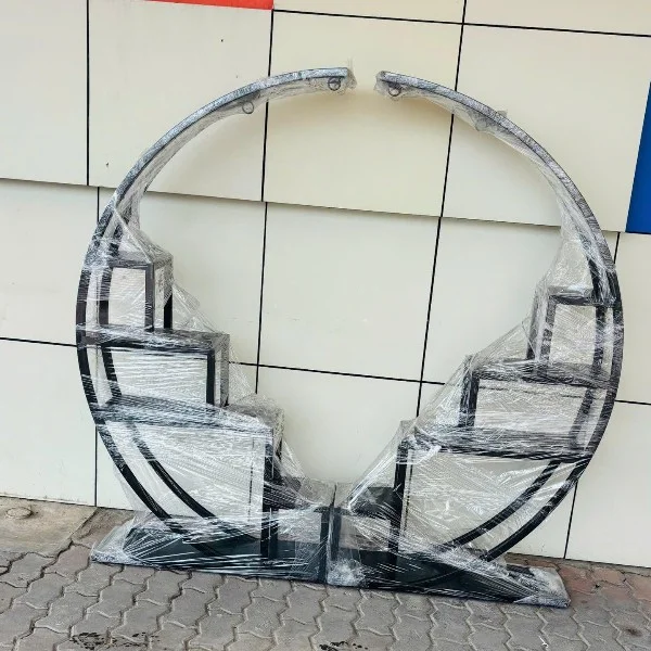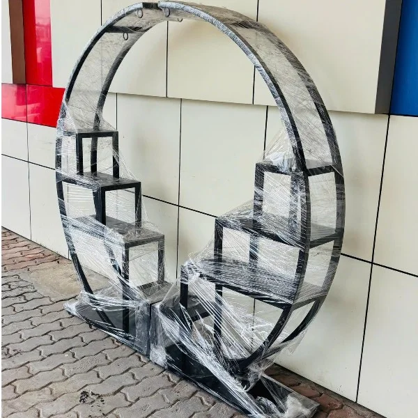 Sắt sơn tĩnh điện màu đen, có các bậc và móc để chậu cây cảnh. Thiết kế hình bán nguyệt hiện đại thời trang.