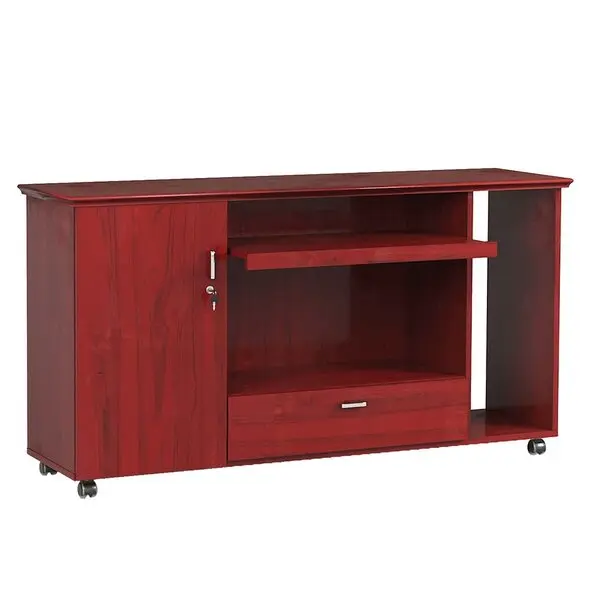 Tủ phụ di động chân bánh xe, có cánh mở, ngăn kéo và khoang để case CPU máy tính và bàn phím.