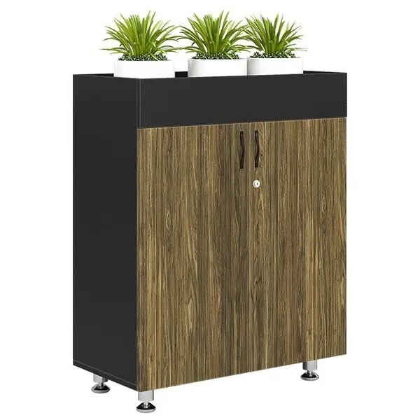 Tủ thấp chất liệu gỗ Melamine có 2 cánh mở, trên nóc có khay để cây.