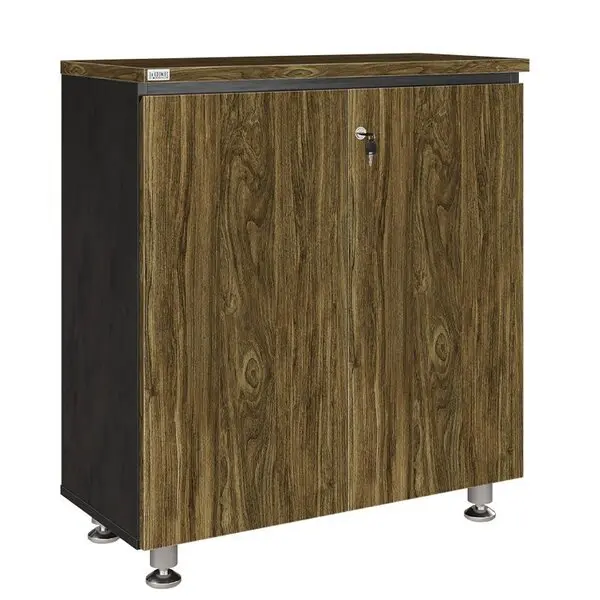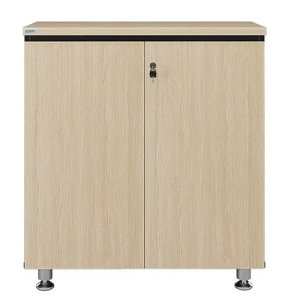 Tủ tài liệu thấp gỗ melamine có 2 cánh mở và 2 khoang, sử dụng tay nắm vát cạnh và có khóa.