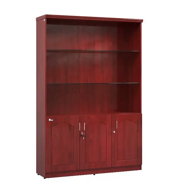 Tủ tài liệu phía trên không cánh có đợt đợt kính trang trí, phía dưới là ba khoang cánh mở có đợt để tài liệu.